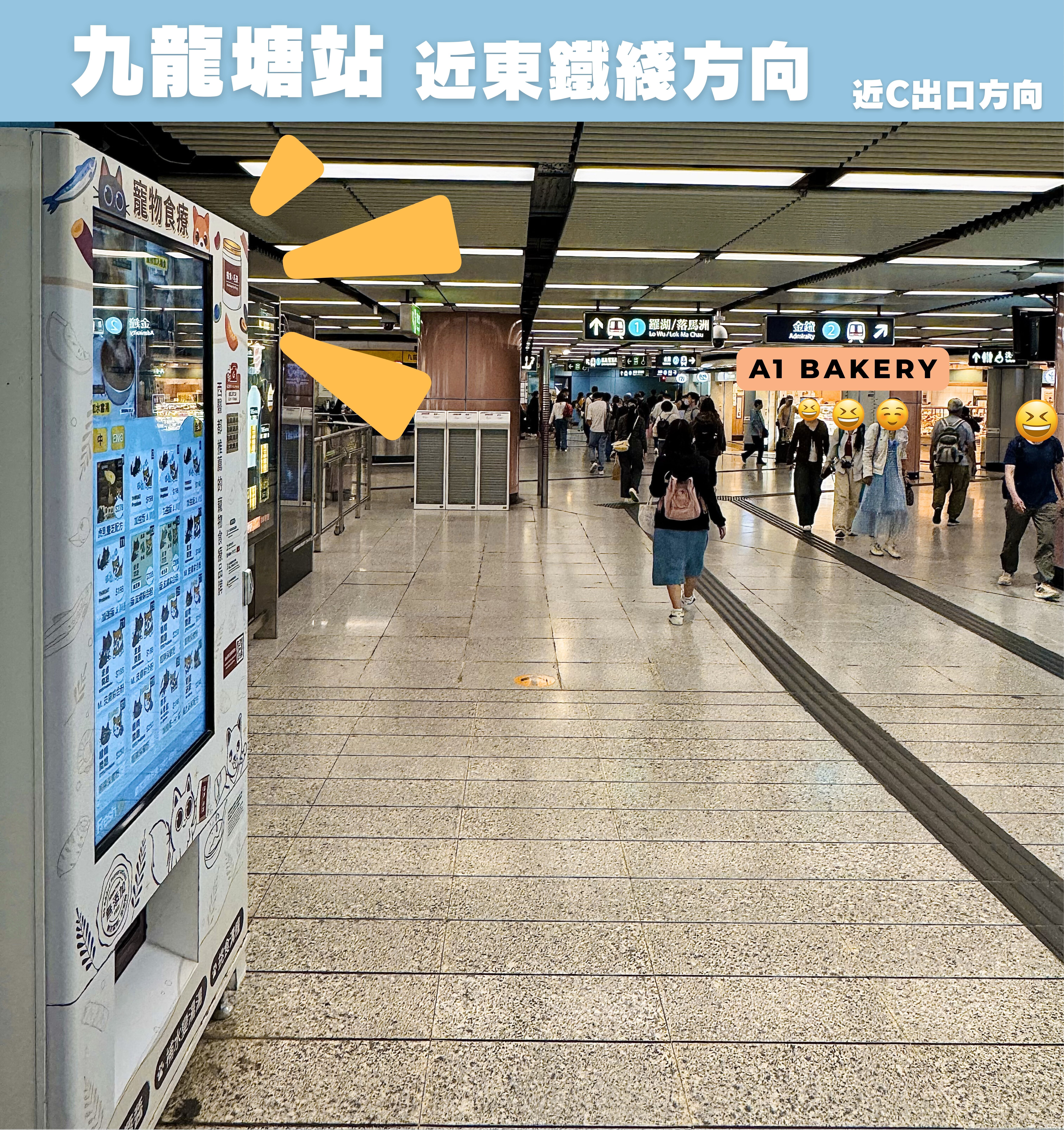 🚇 Kowloon Tong Station, near the East Rail Line Direction, Opposite to A1 Bakery 🍞 (**Inside the Gate) Near Exit C direction