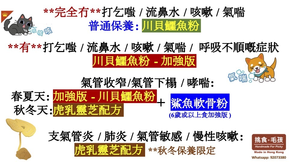 **The body constitution of every dog or cat is different. All of our ingredients for our exclusive food therapy formula have been listed. You can consult veterinarian for advice before buying and consuming.