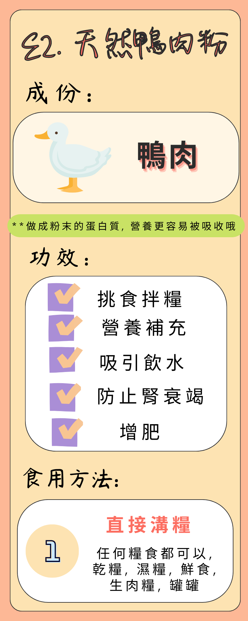 1. ⭐⭐鴨肉濃湯:半碗熱水溝3匙,放涼, 當湯俾佢飲 (營養補充,增肥)