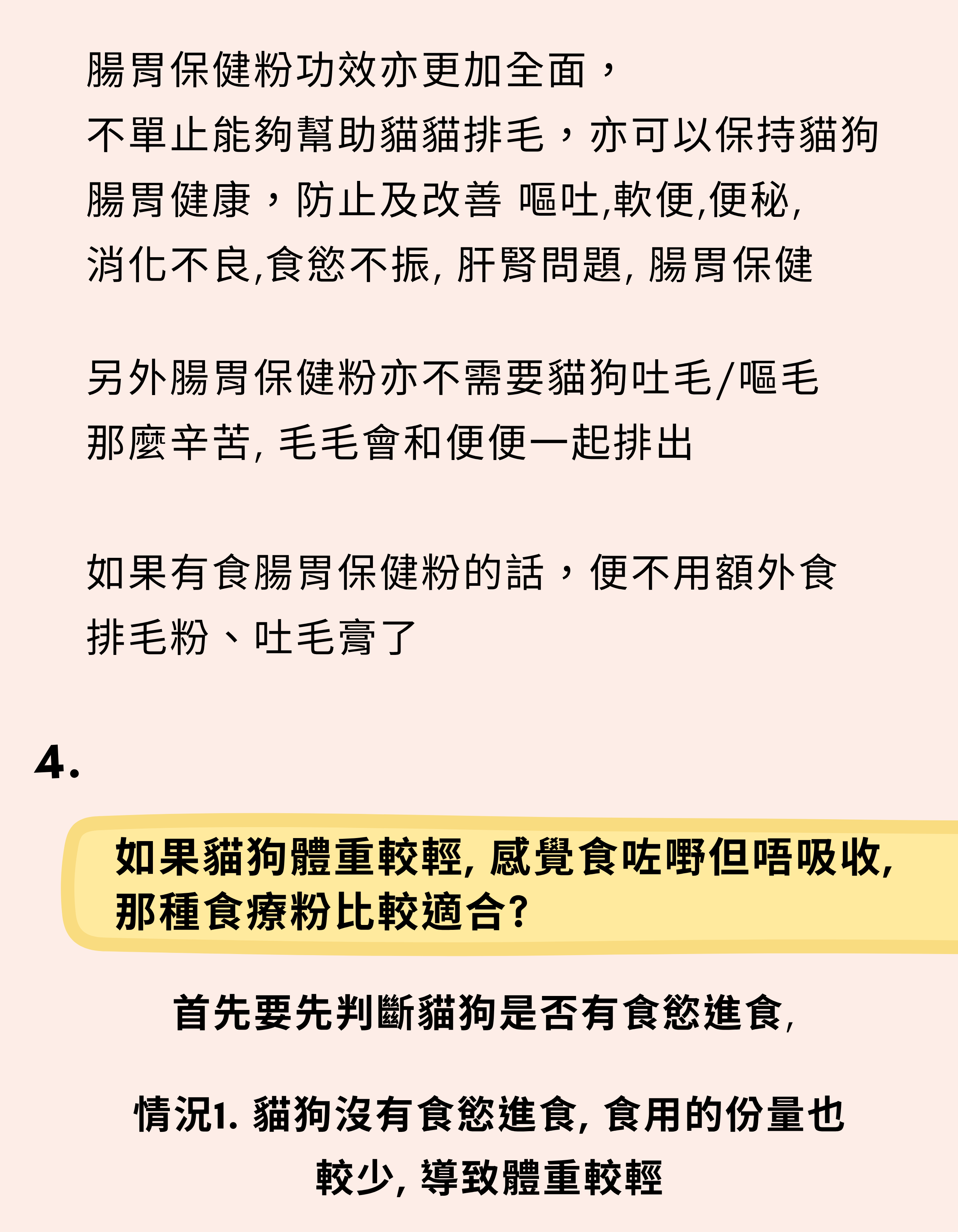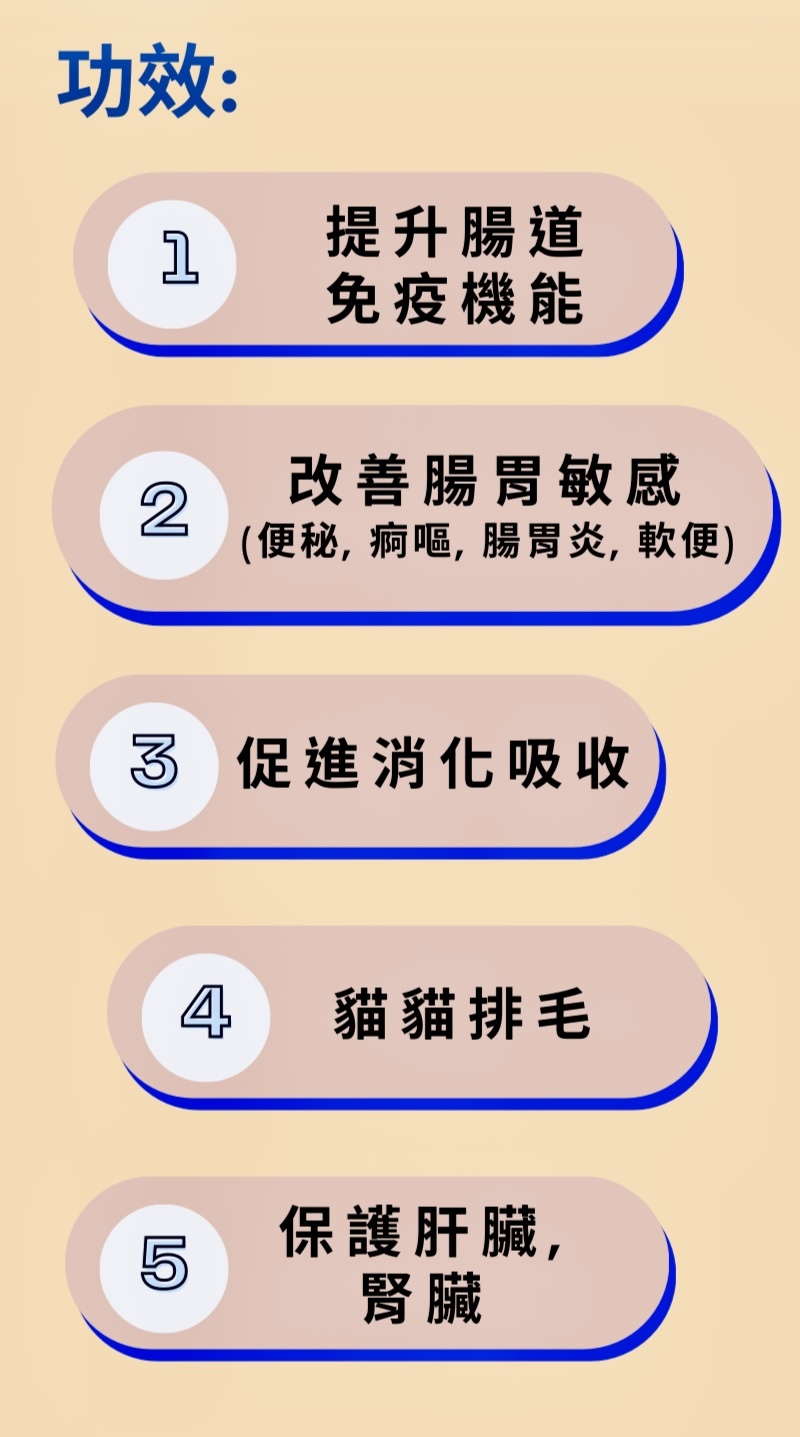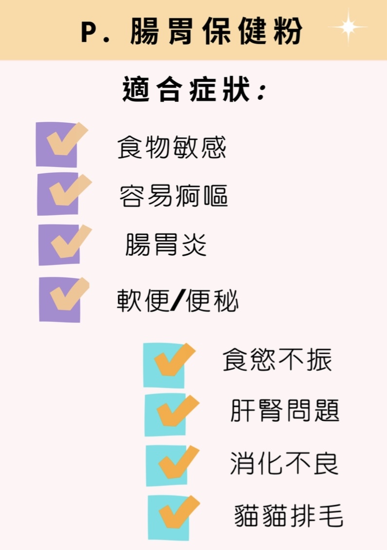 ▍適合症狀: 腸胃保健, 容易痾嘔, 食物敏感, 腸胃炎 , 軟便/便秘,消化不良,貓貓排毛,食慾不振, 肝腎問題
