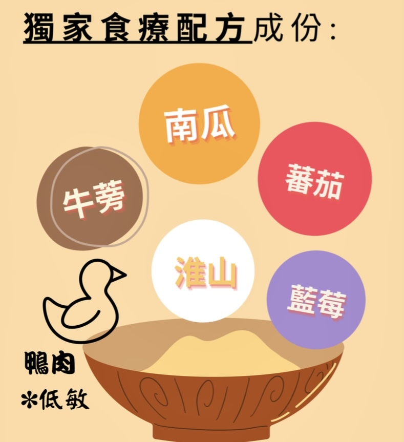 ▍獨家配方: 南瓜, 鴨肉, 藍莓, 牛蒡, 蕃茄, 淮山